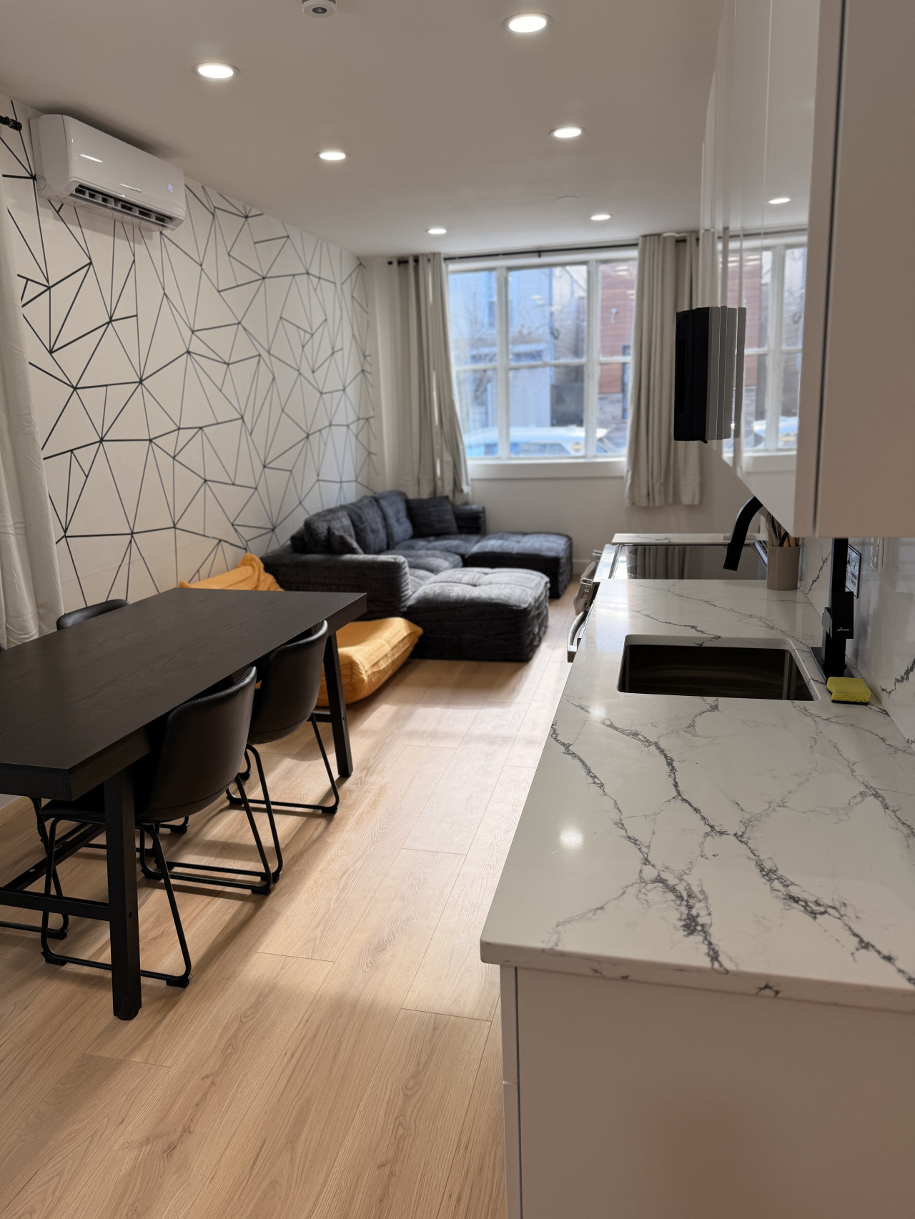 Amazing modern appartement in a great location ! we’ll be back!! Positive: The location was amazing, very close to New York with a bus stop right in front of the apartment! The place is clean and modern with a well-equipped kitchen and a washing machine, which was a big plus for our long stay. There was also some supermarkets nearby which were very convenient ! Overall, the apartment was perfect for our trip!! The host was kind and helpful, always responding very quickly and assisting us whenever we had an issue. Negative: There is unfortunately no central heating, only electric heaters or AC units, which made the air quite dry since we had to run them 24/7 due to the cold wave in January! This is probably not an issue at other times of the year though. We also had a plumbing issue with the toilet, but it was fixed quickly.
